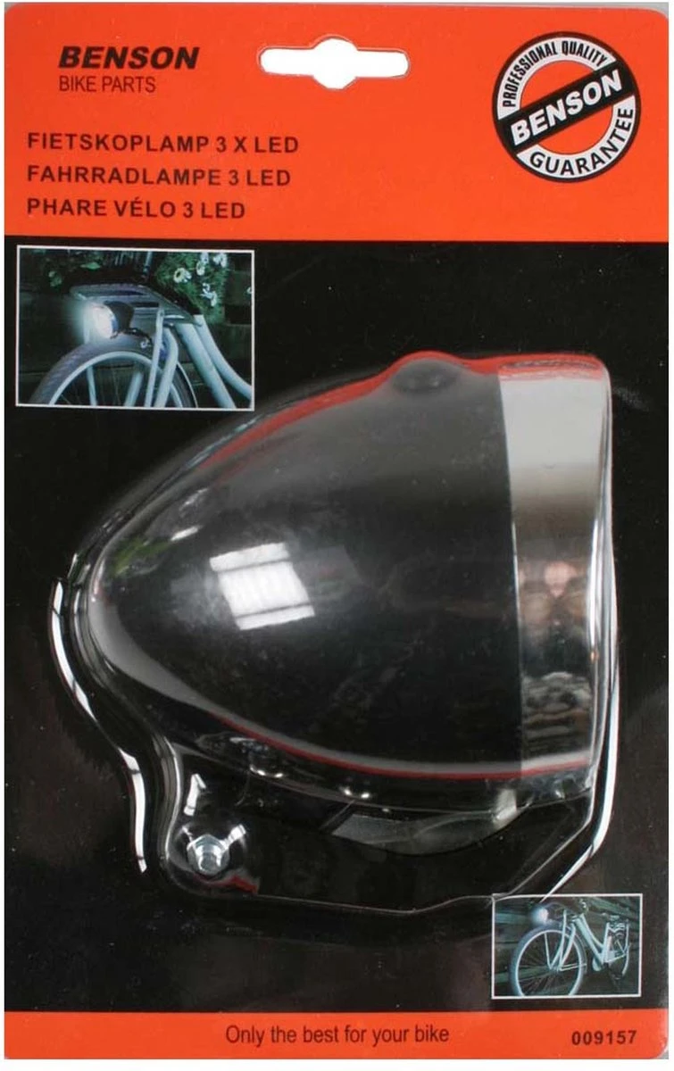 Benson Koplamp Batterij 3x Led – Zwart Fietslamp Lamp Voor Fiets