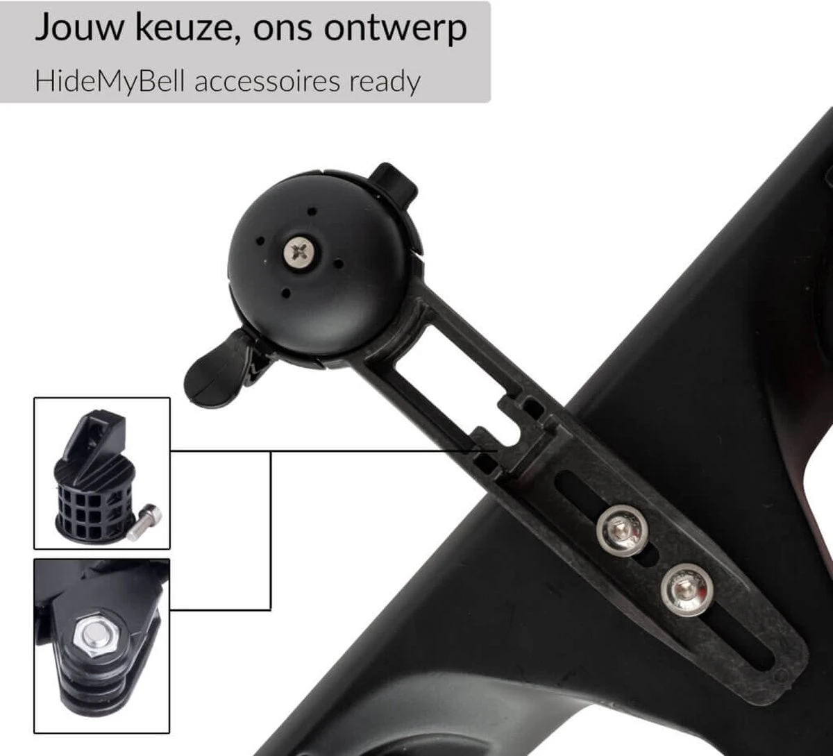 We zijn verheugd om ons nieuwe product voor te stellen welke uitermate geschikt is voor de veeleisende fietser. De HideMyBell-raceday fi is een must-have door de keuze van premium materialen gecombineerd met minimalistische looks. Uniek is de mogelijkheid om de bel in een handomdraai van de houder te verwijderen. Nog meer gebruikersgemak heb je door de keuze om de klepel links of rechts te monteren. De houder is gemaakt van een extreem stijve UD carbon composiet. Dit premium materiaal maakt het mogelijk om lichtgewicht te ontwerpen in combinatie met een erg goede stijfheid. Specificaties • Bel in een handomdraai te verwijderen • Klepel van de bel links of rechts keuze • Materiaal: UD Carbon • Lichtgewicht: slechts 26 + 11 gram • Montage met sleufgat voor optimale positie fietscomputer • Bike MOTION AWARD winnaar Inclusief • Adapters: Garmin, Sigma ROX (Garmin adapter) Wahoo, Bryton & Lezyne Optionele accessoires • uni light adapter • GoPro style adapter • Polar adapter