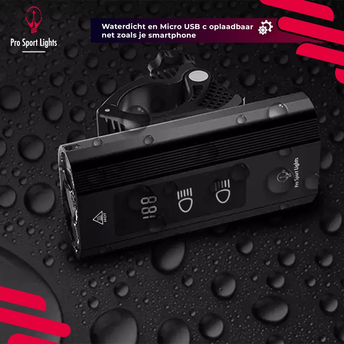 Pro Sport Lights Performance fietsverlichting met een vermogen van 1200 Lumen garanderen we je dat je zal zien en gezien worden in het verkeer.