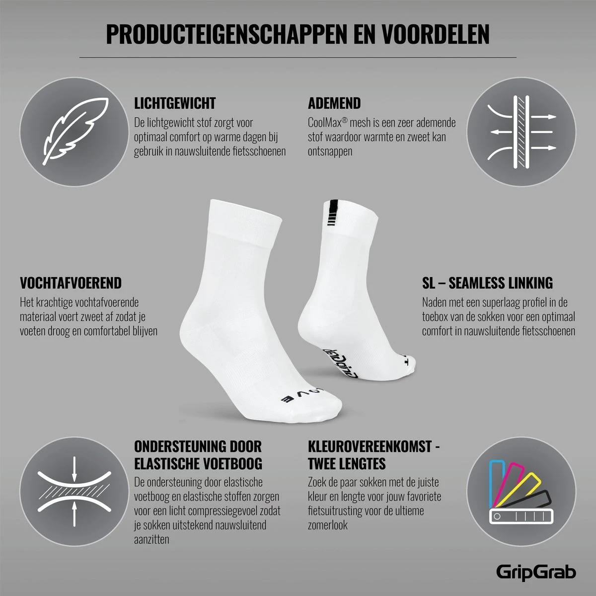 GripGrab – Lightweight SL Performance Zomer Fietssokken Wielersport Sokken – Wit – Unisex – Maat M