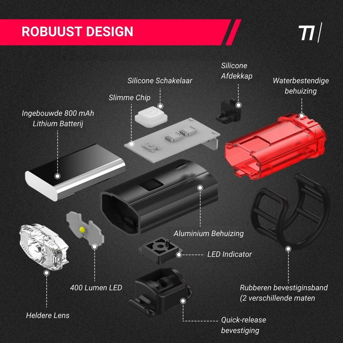 TIKKENS® LED Fietsverlichting Helmlamp – Helm – Voorlicht & Achterlicht – USB Oplaadbaar – Zwart – Voor En Achter – Waterdicht – Fietslampjes
